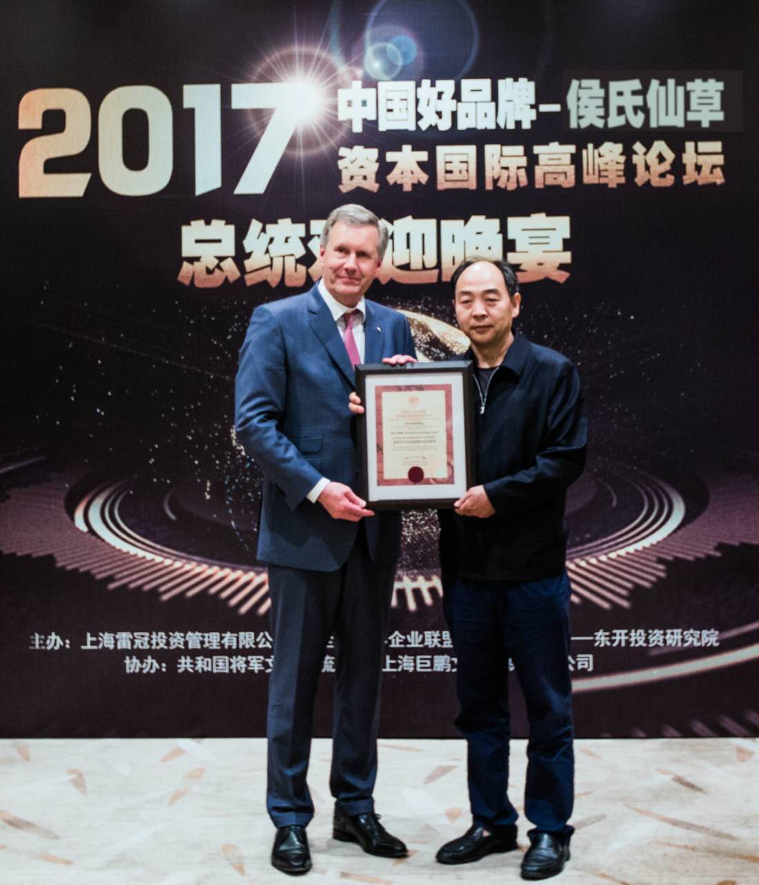 以制造業(yè)和品質(zhì)聞名世界的工業(yè)品牌大國(guó)—德國(guó),第十任總統(tǒng)克里斯蒂安?伍爾夫先生也出席了本次論壇,并為侯氏仙草等十個(gè)國(guó)內(nèi)品牌頒發(fā)了“全球企業(yè)聯(lián)盟中國(guó)好品牌科技貢獻(xiàn)獎(jiǎng)”。